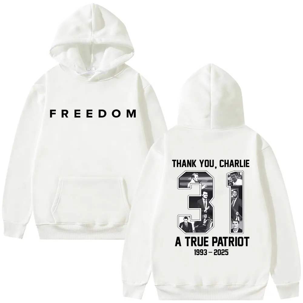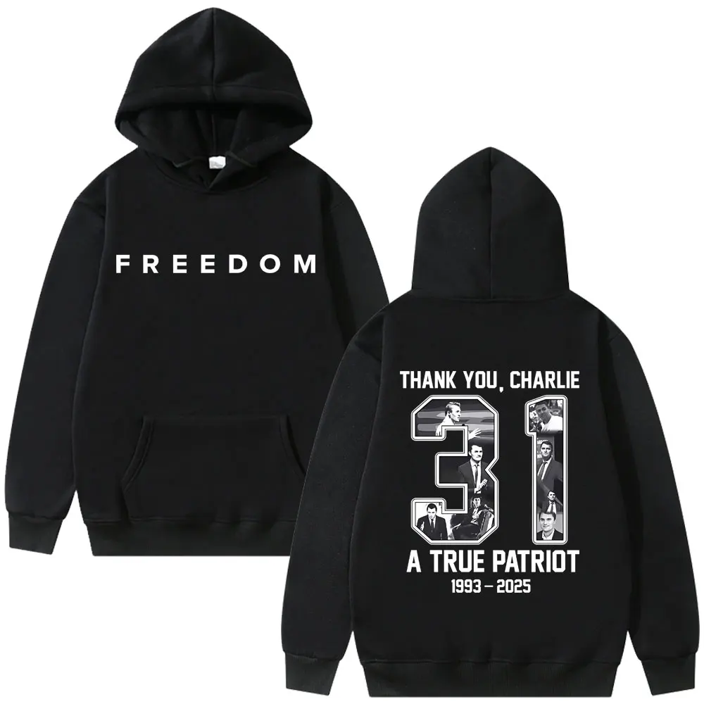 Charlie Kirk Freedom Graphic Print Hoodie Men Women Tribute Memorial American Hero Sweatshirt Male Patriotic Activism Streetwear