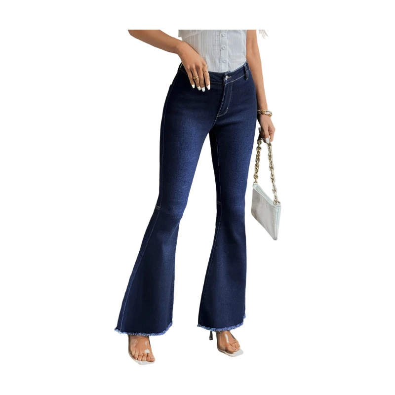 High Waist Slim Fit Bootcut Denim Pants for Women Elegant Stretch Flare Jeans Long Leg Classic Blue Trousers Clothing