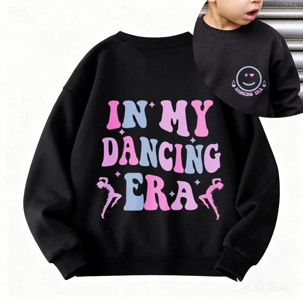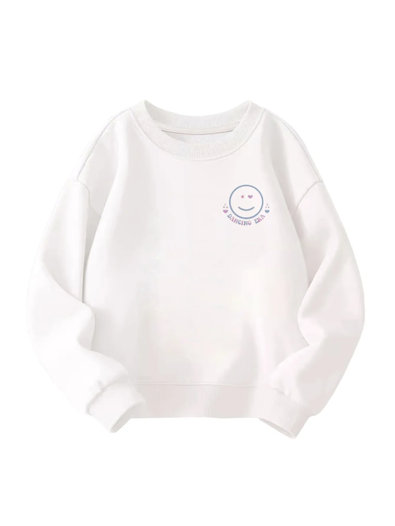 Kids Crew Neck Sweatshirt Smiley Face Dancing Era Graphic Pullover For Boys Girls Cheerful Outfits