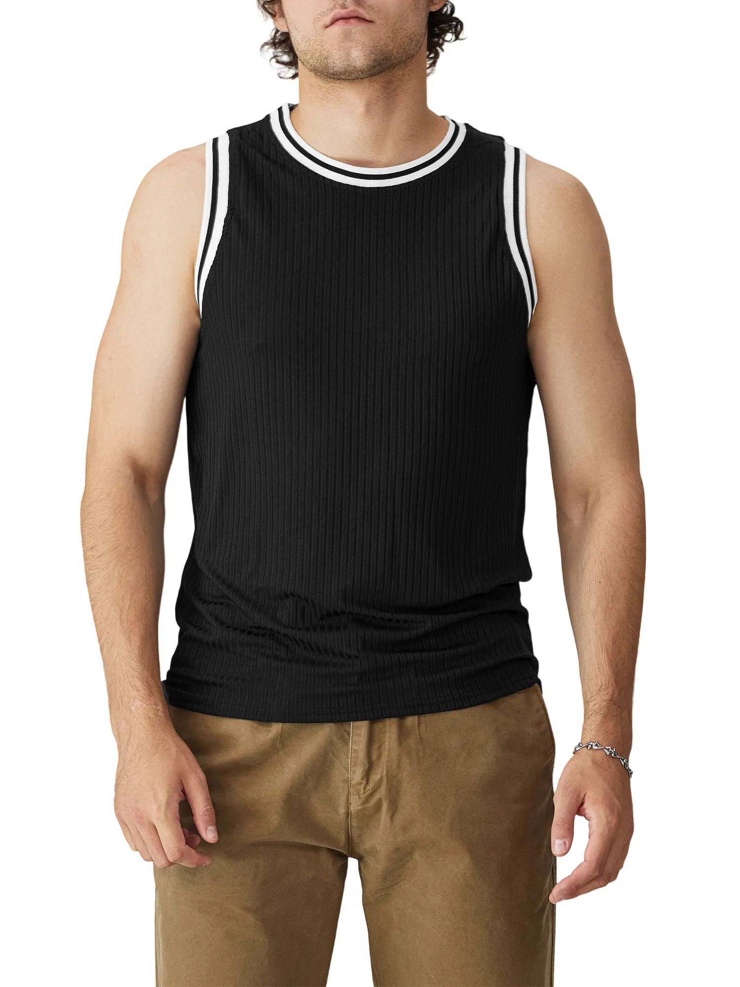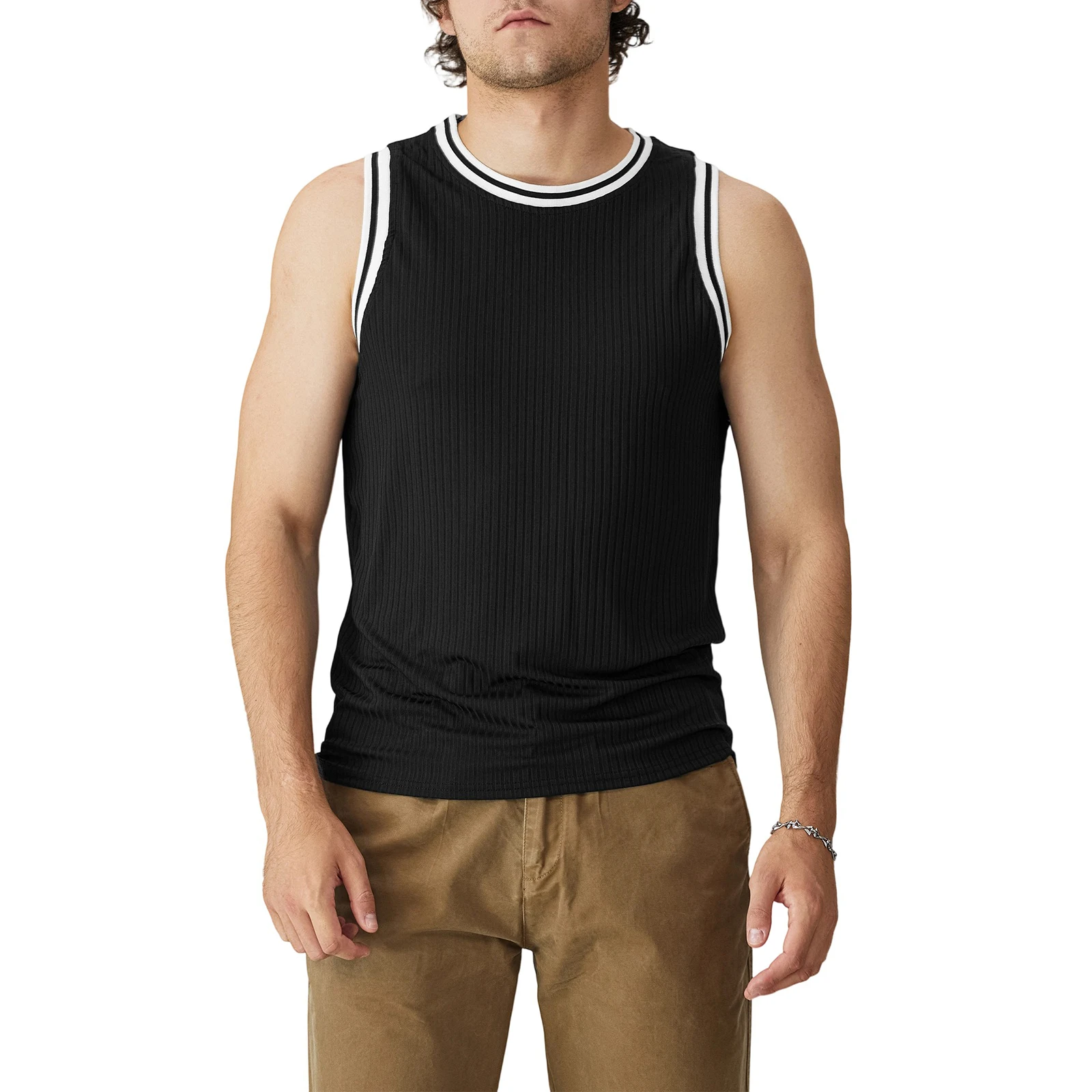 Men s Fit Ribbed Tank Tops Sleeveless Round Neck Muscle T Shirts Gym Workout Tops for Summer