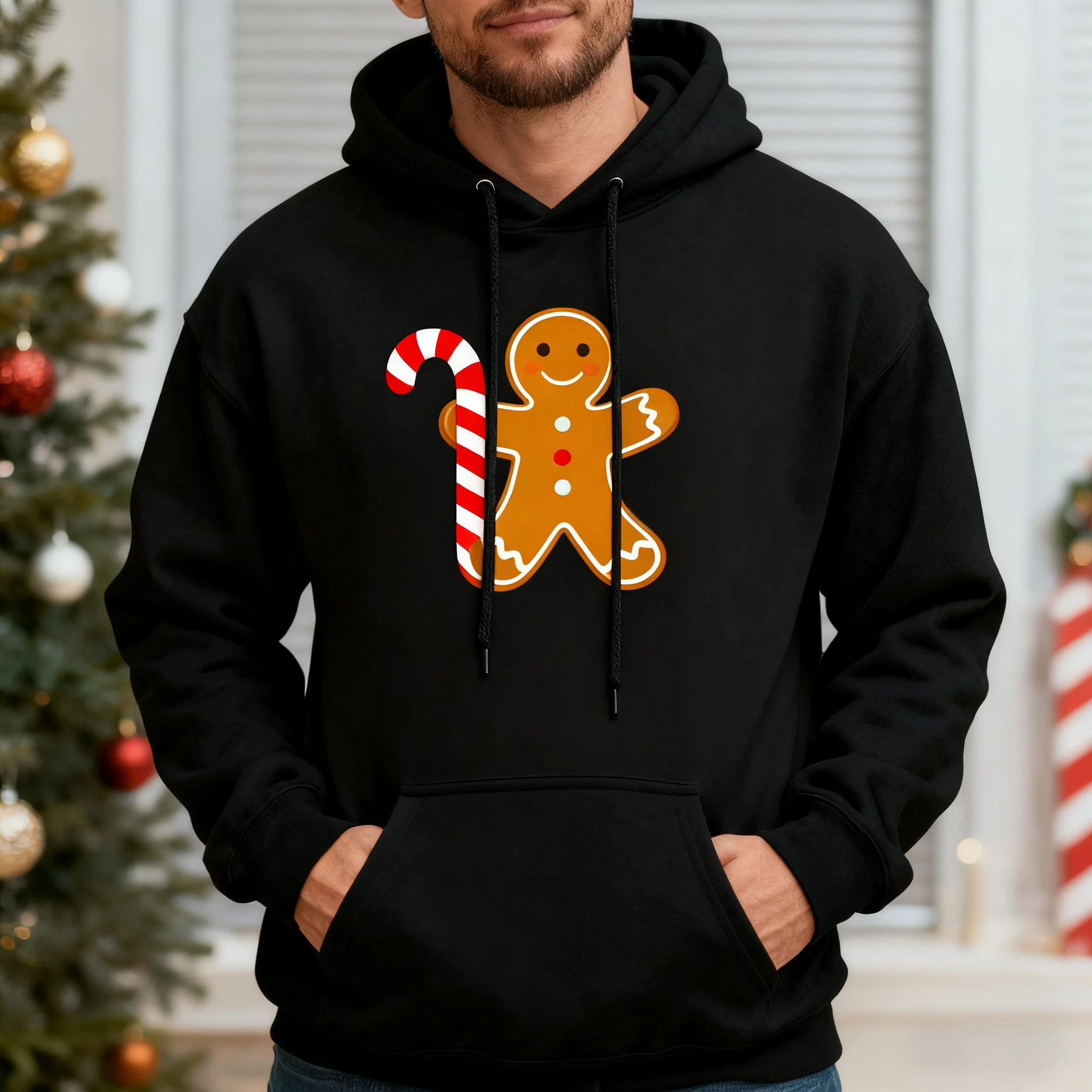 Men‘s Merry Christmas Cartoon Print Hoodie Men Women Kid Street Fashion Autumn and Winter Loose Sweatshirt Holiday Gift