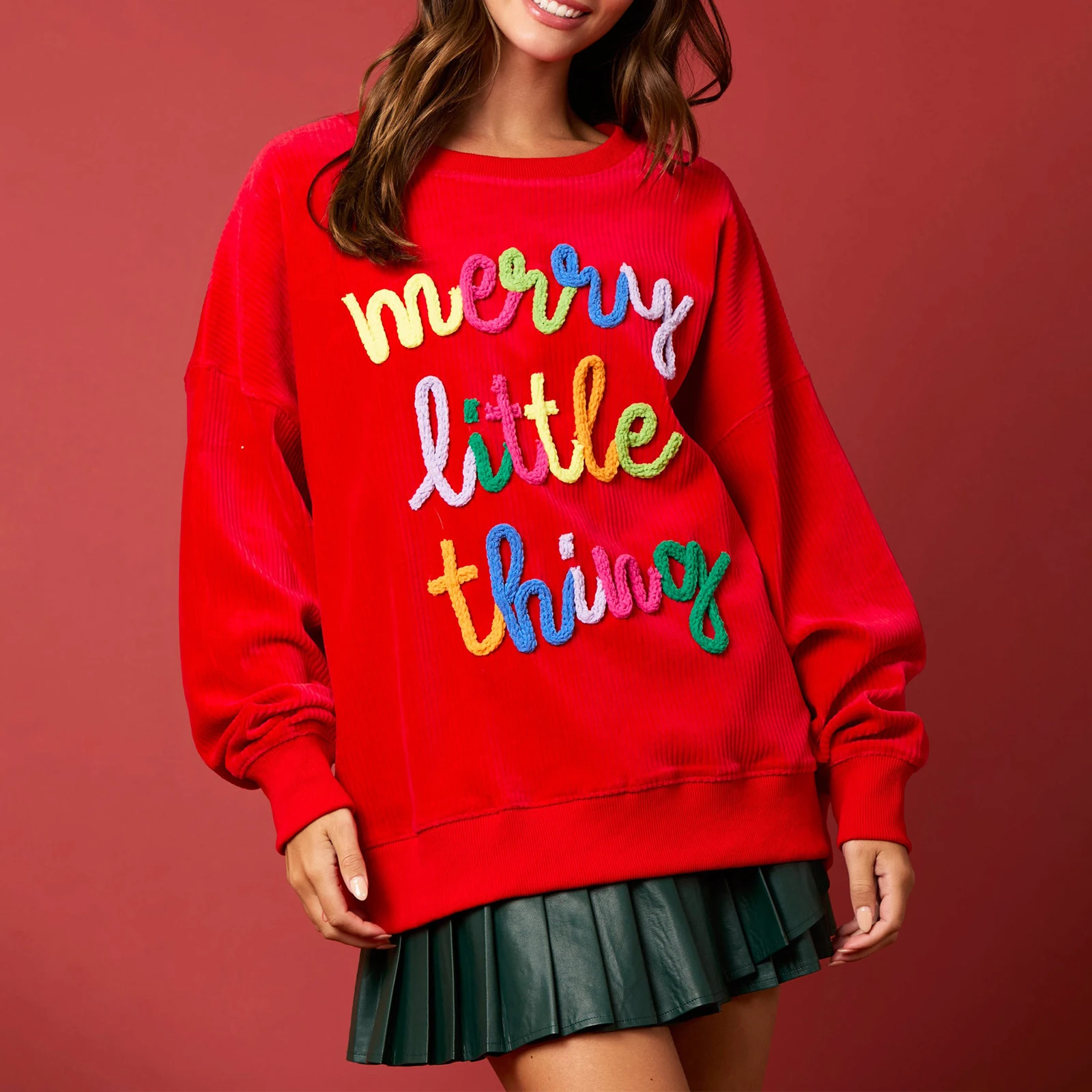 Merry Sweatshirt for Women Merry Christmas Glitter Patch Crewneck Sweater Xmas Letter Long Sleeve Pullover Top
