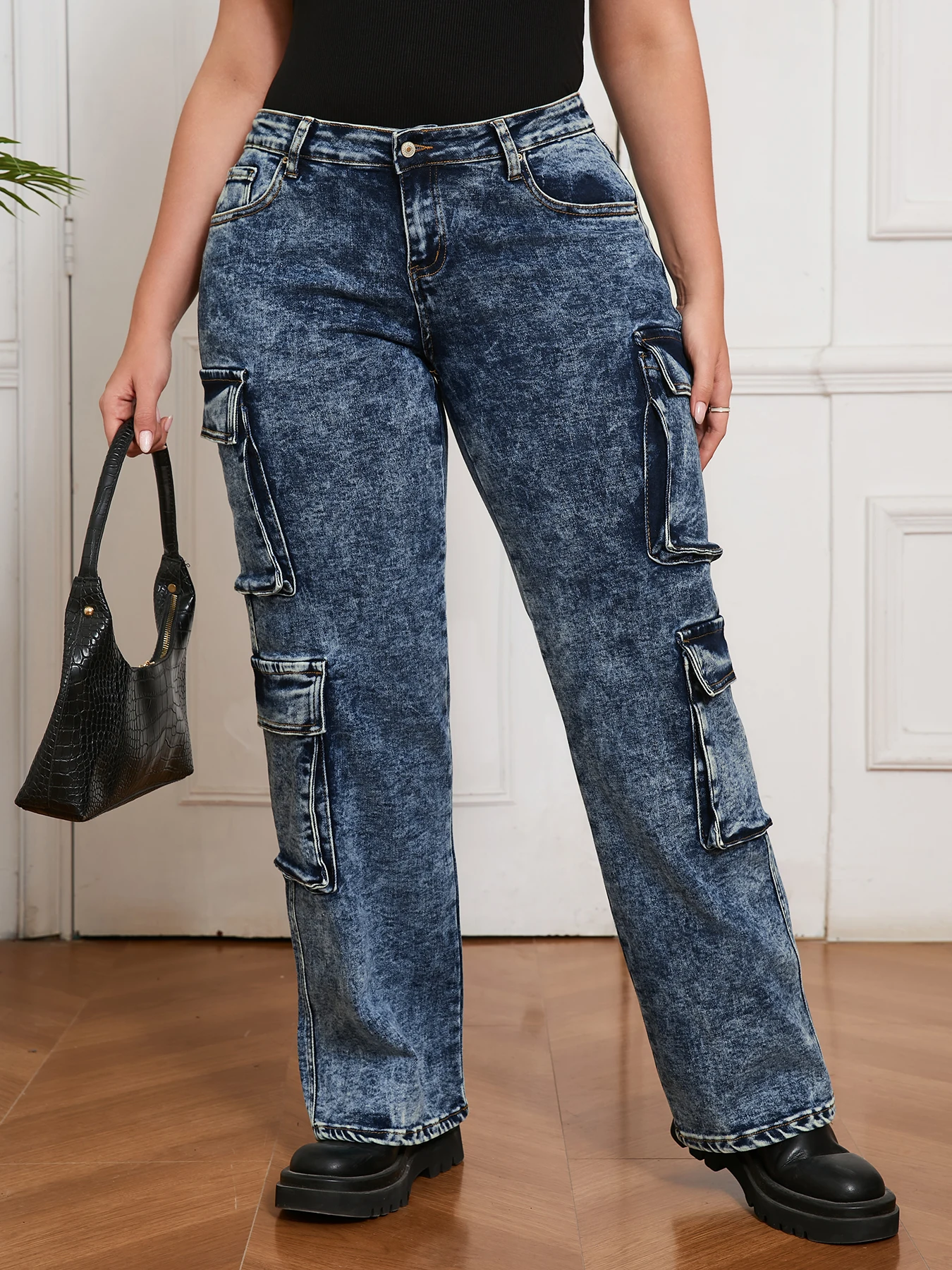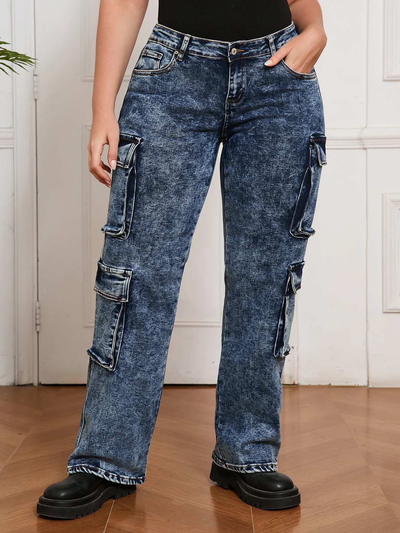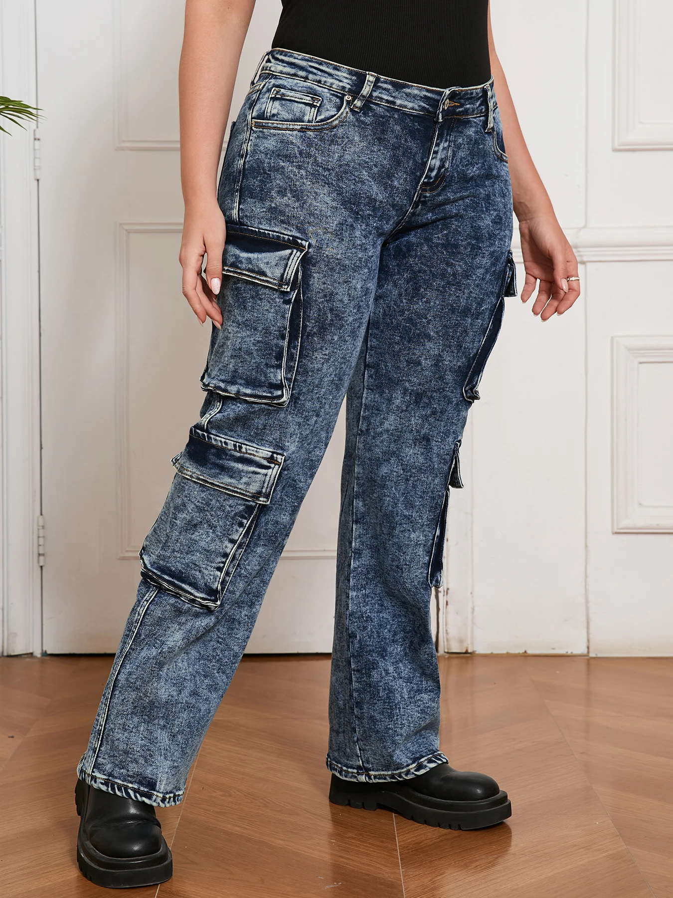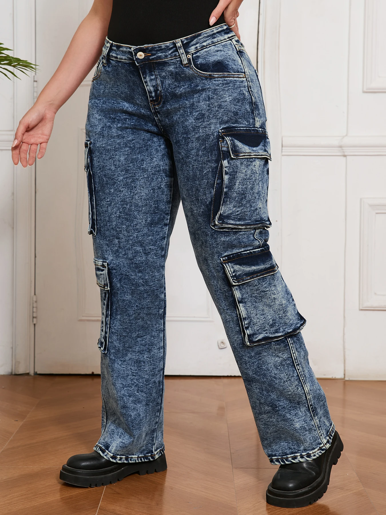 Be the first to review “Minimalist Women’s High Waist Denim Cargo Pants Straight Fit Elegant Solid Design for Office Casual Clothing Daily Wear”