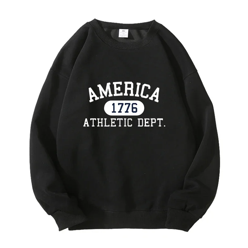 Retro American 1776 Pattern Sweatshirt Soft Round Neck Sweatshirt Men’s and Women’s Warm Casual Fashionable Streetwear