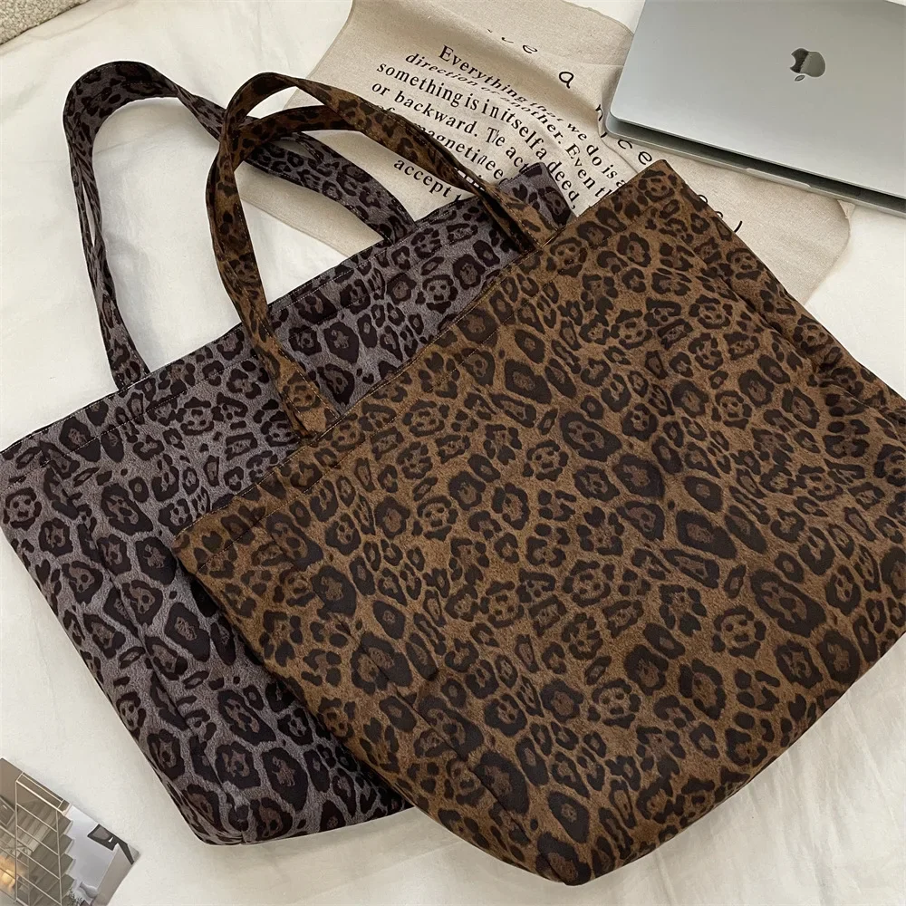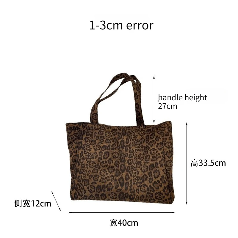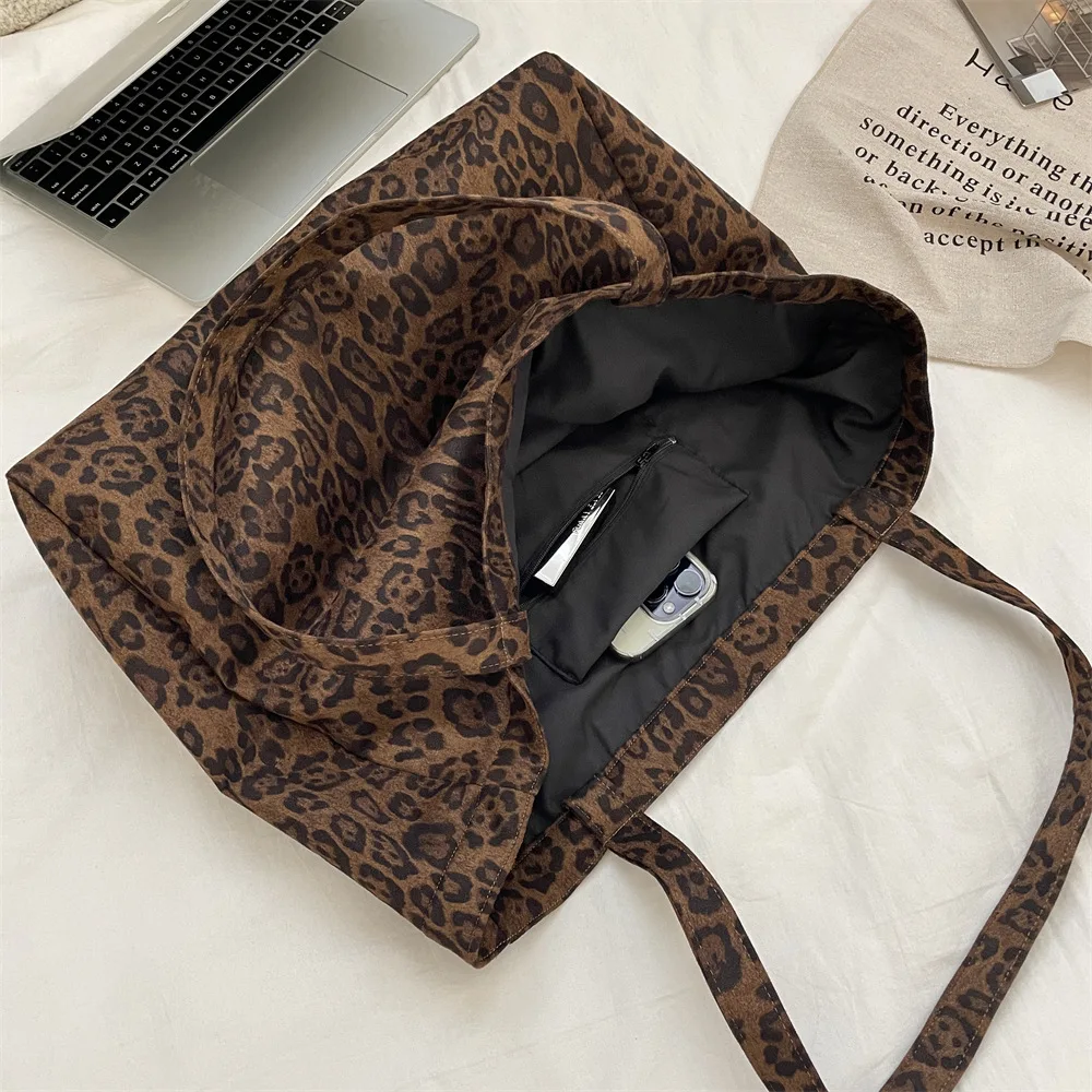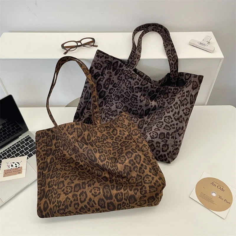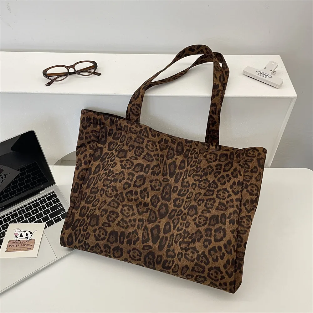 Retro Faux Suede Women’s Shoulder Bags Leopard Print Large Capacity Ladies Shopping Bag College Style Girls Handbag Fall Winter
