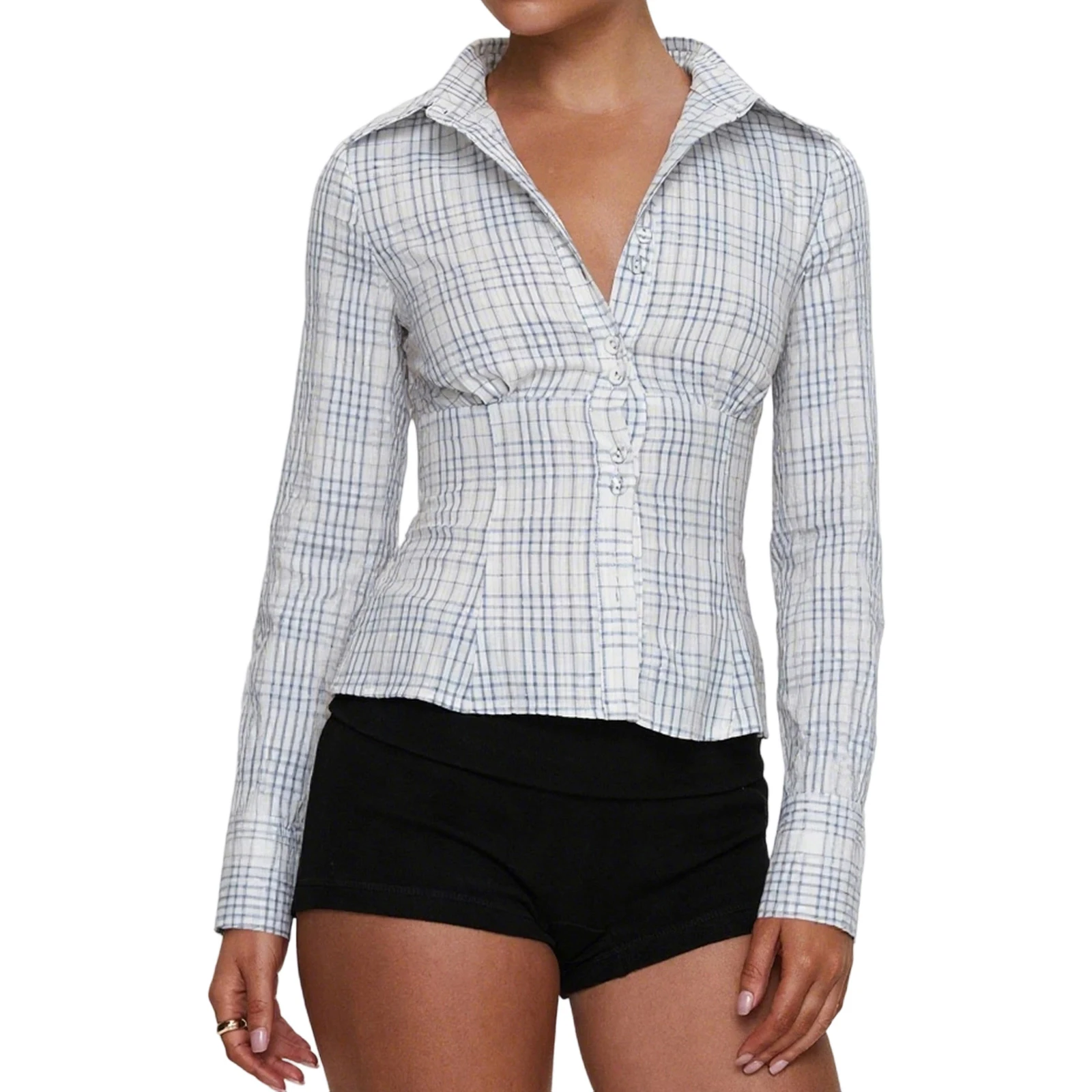 Women s Classic Plaid Shirt with Long Sleeves and Turn Down Collar Perfect for Spring and Autumn Casual Wear
