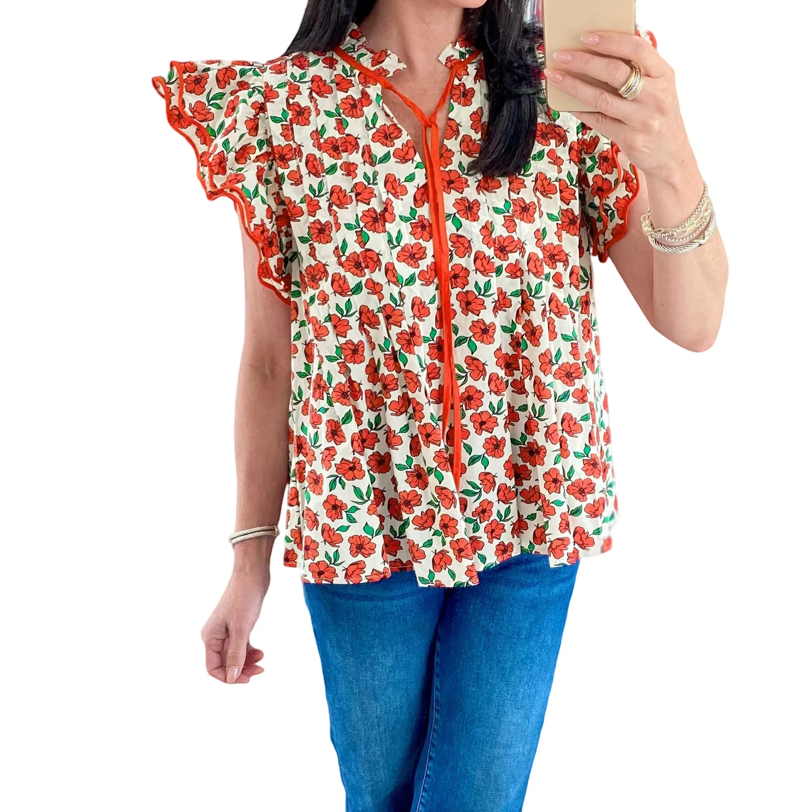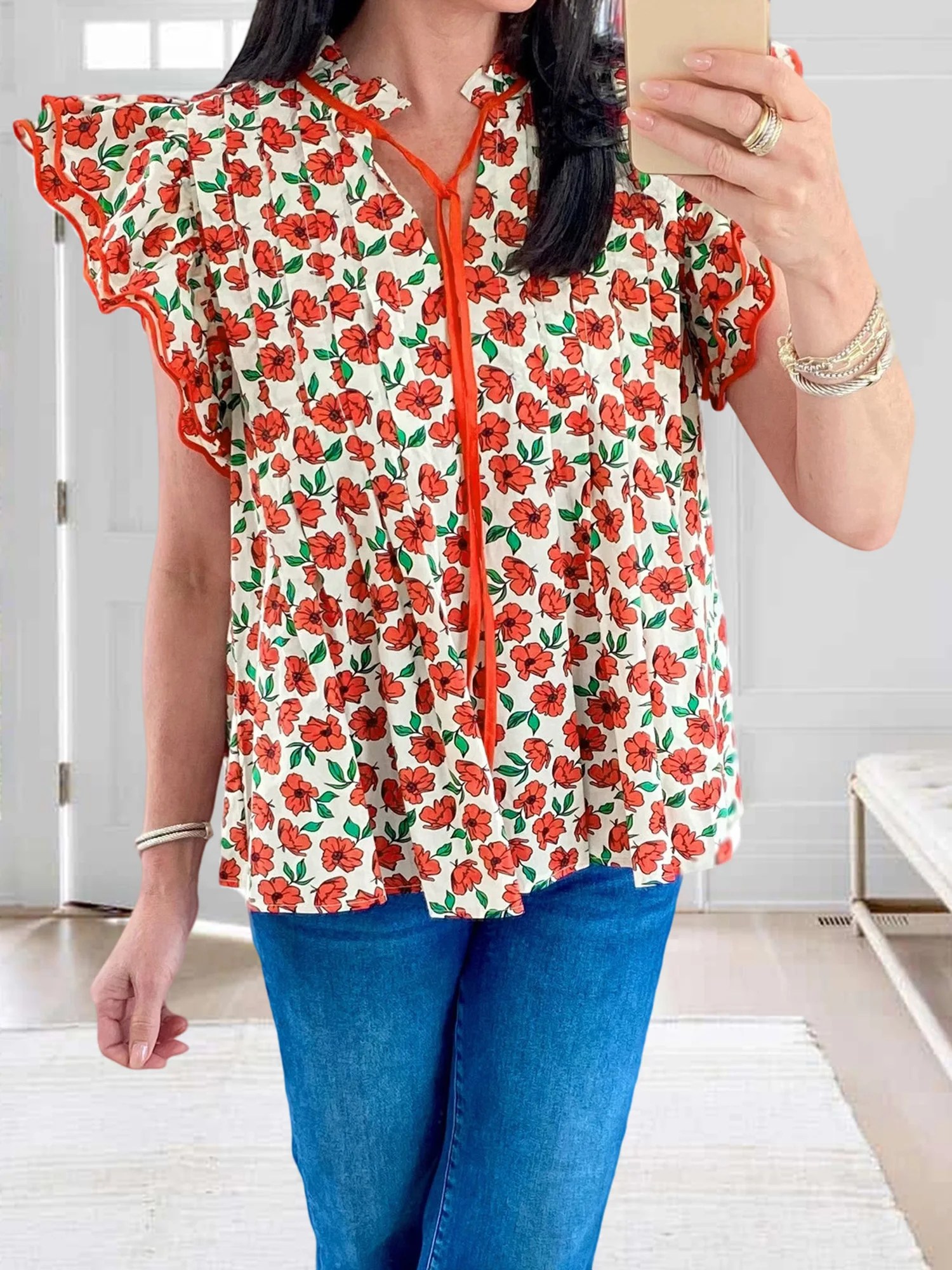 Women s Summer Casual V-Neck T-Shirt with Tie-Up Detail and Floral Print Short Sleeves Streetwear Top