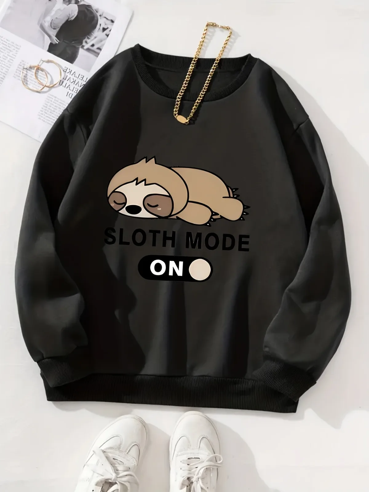 Be the first to review “Women’s Fashionable Casual Cartoon Sloth Pattern Printed Round Neck Sweatshirt Suitable for Parties Holidays Gift Pullovers”